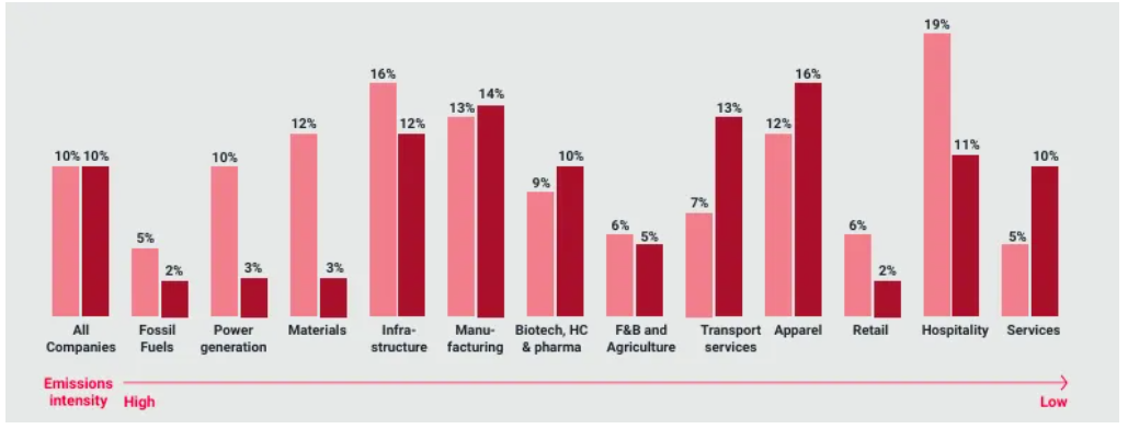 尽管部分企业担忧可持续发展可能影响盈利能力,但CDP的研究表明,在市值增长方面,取得气候目标进展的企业与未取得进展的企业增速相近,均保持在年均10%左右。然而,不同行业的增长情况有所差异。CDP预测,全球绿色市场规模将从2024年的5万亿美元增长至2030年的14万亿美元,这表明企业能够在可持续商业模式中实现长期的财务回报。